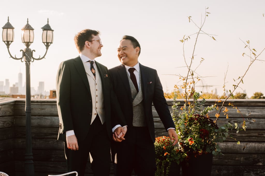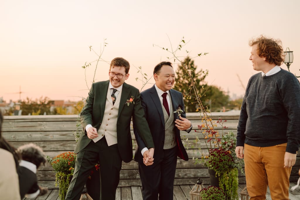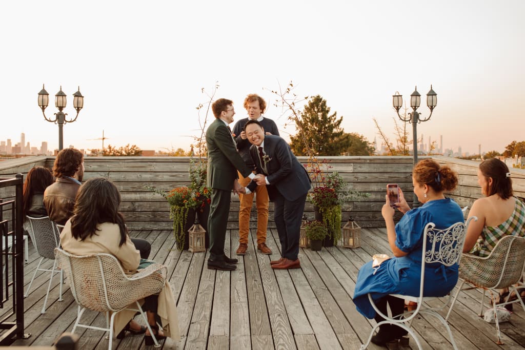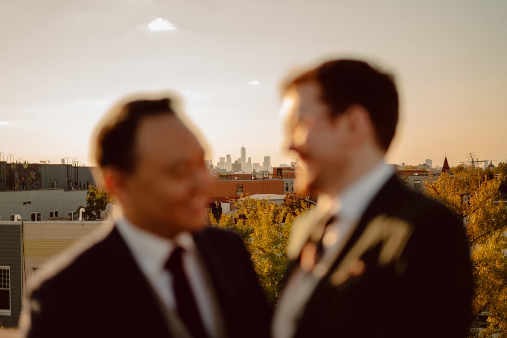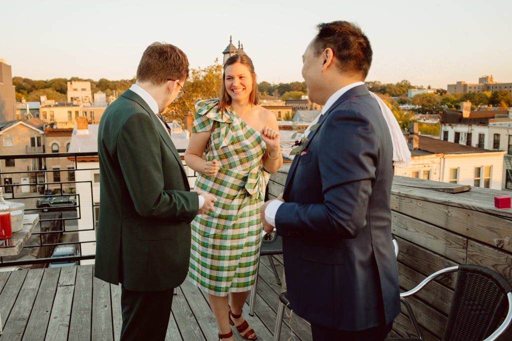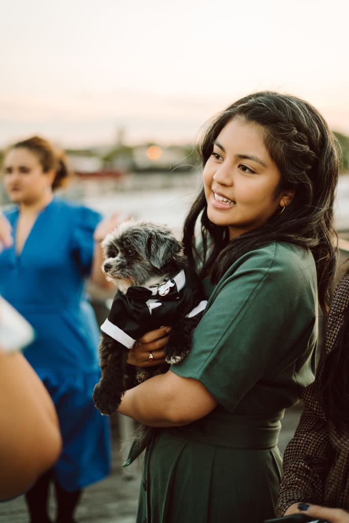 Kris officiated our short rooftop ceremony. As you can see, our furry nephew Frank stood us up with how well Catherine dressed him.