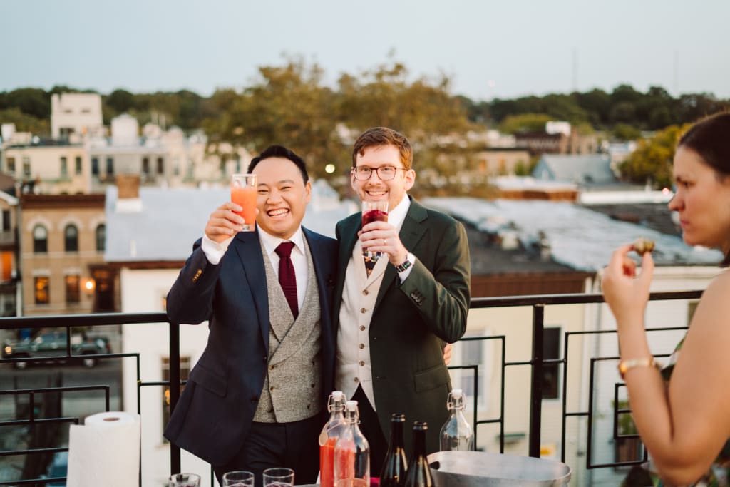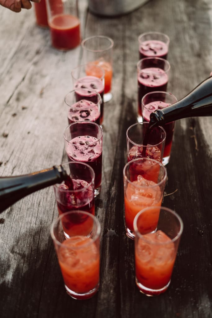 As the sun set, we had Lambrusco Blood Orange cocktails for a quick toast before our reception.