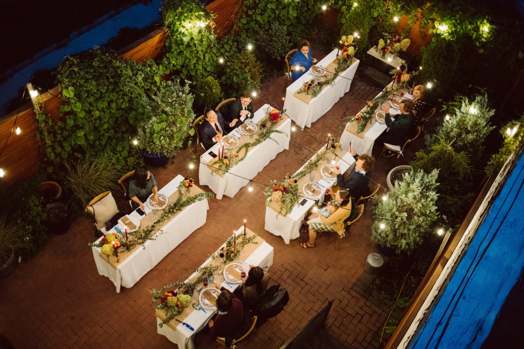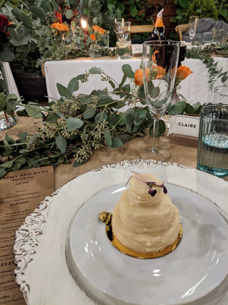 We had an intimate-yet-socially-distanced reception setup in the backyard for our eight guests (plus our two nephews!).