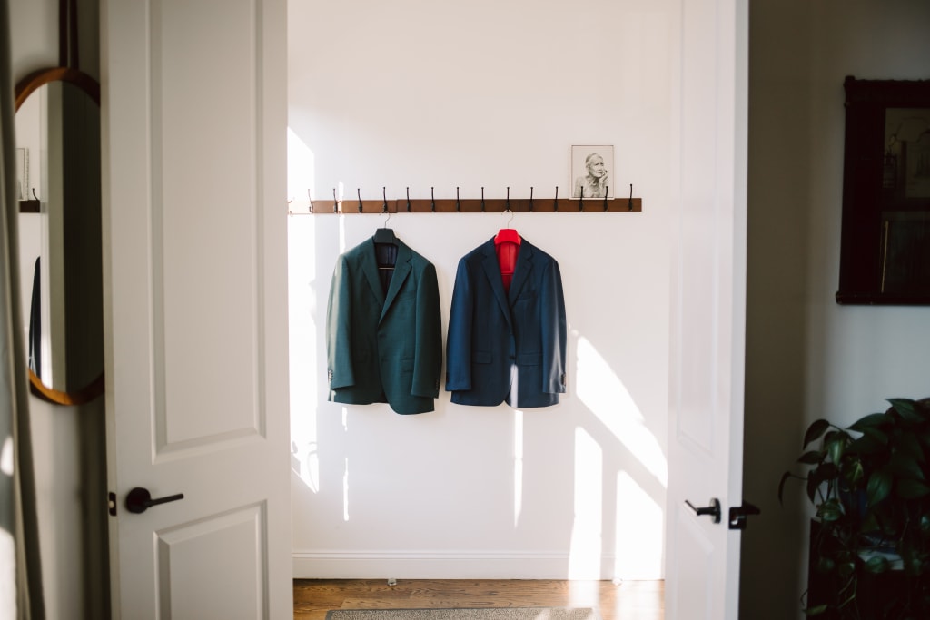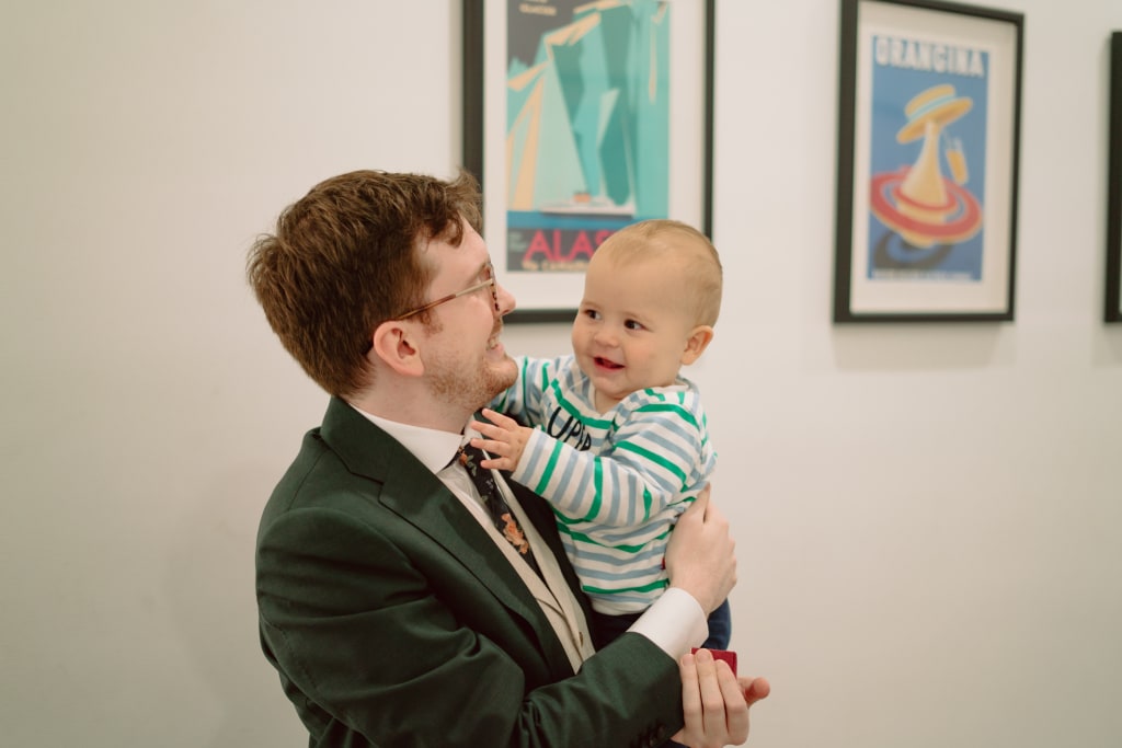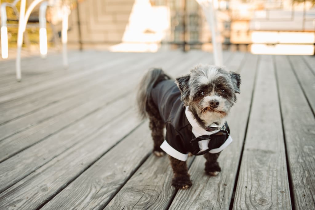 Our furry nephew Frank checked our outfits, while our non-furry nephew George straightened our ties.